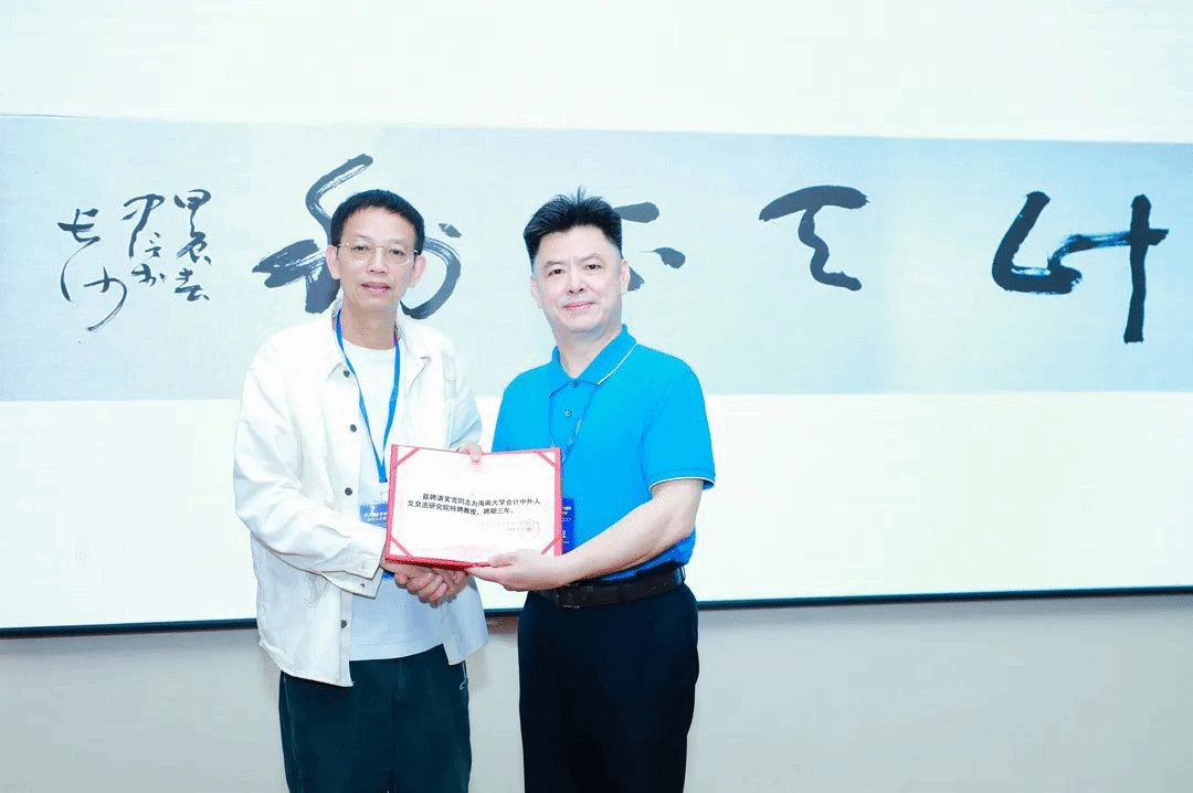 为了加强会计中外人文交流和自贸港会计人才的培养,公海gh555000aa线路检测会计中外人文交流研究院与《会计之友》杂志社达成战略合作,并将《会计之友》列为院刊,随后伍中信理事长为周晓苏教授和笑雪总编颁发特聘教授聘书。