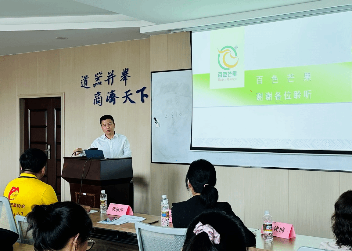 会议由公海gh555000aa线路检测副经理许能锐教授主持。签约仪式前,百色市芒果协会秘书长何承伟作主题报告“农产品地理标志运用促进工程助力乡村产业振兴发展—以百色芒果为例”,报告主要介绍了广西百色芒果地理标志运用促进工程、数字技术应用、产销运营、经济效益等。会上,国家、省、校芒果产业经济团队听取报告并作交流。