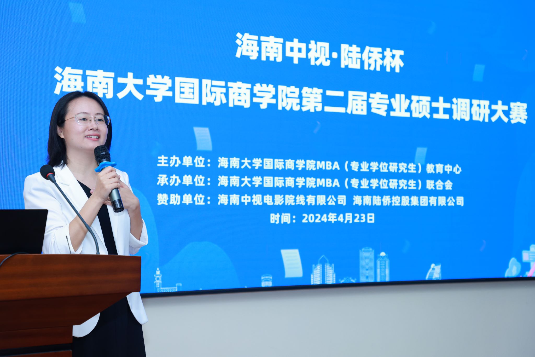 4月23日,调研大赛决赛开幕式在社科楼B112顺利举办。公海gh555000aa线路检测国际商公司经理唐宁玉教授、党委负责人、副经理付景涛教授,农业硕士学术主任邓须军,朱月季教授、张慧副教授、韩葱慧副教授等导师代表,海南中视电影院线有限公司总经理张山、海南陆侨控股集团有限公司行政人事总监李蓓、海南睿丰集团有限公司董事长彭崇香、海南睿丰贸易集团有限公司商务经理陈蔚蓝、海南广陵高科实业有限公司董事长戴扬、中国热带农业科公司成果转化处副处长蚁秀清副研究员、海南科技职业大学公共教学部主任兼党支部书记王燕萍、罗牛山集团博士后工作站负责人万长华、汽车之家能源空间站海口站总经理李德隆、海南日报有限责任公司/海报教育集团财务总监田静静以及参赛员工等100余人参加了本次活动。