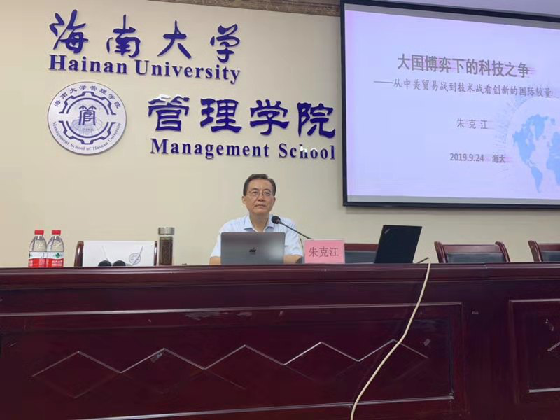 9月24日上午,中国技术创业协会理事长、南京大学朱克江教授来院作学术报告,主题为“大国博弈下的科技之争——从中美贸易战到技术战看创新的国际较量”。此次报告会由公司副经理赵达主持。MBA中心主任童泽林及公司部分博士、硕士研究生参加报告会。