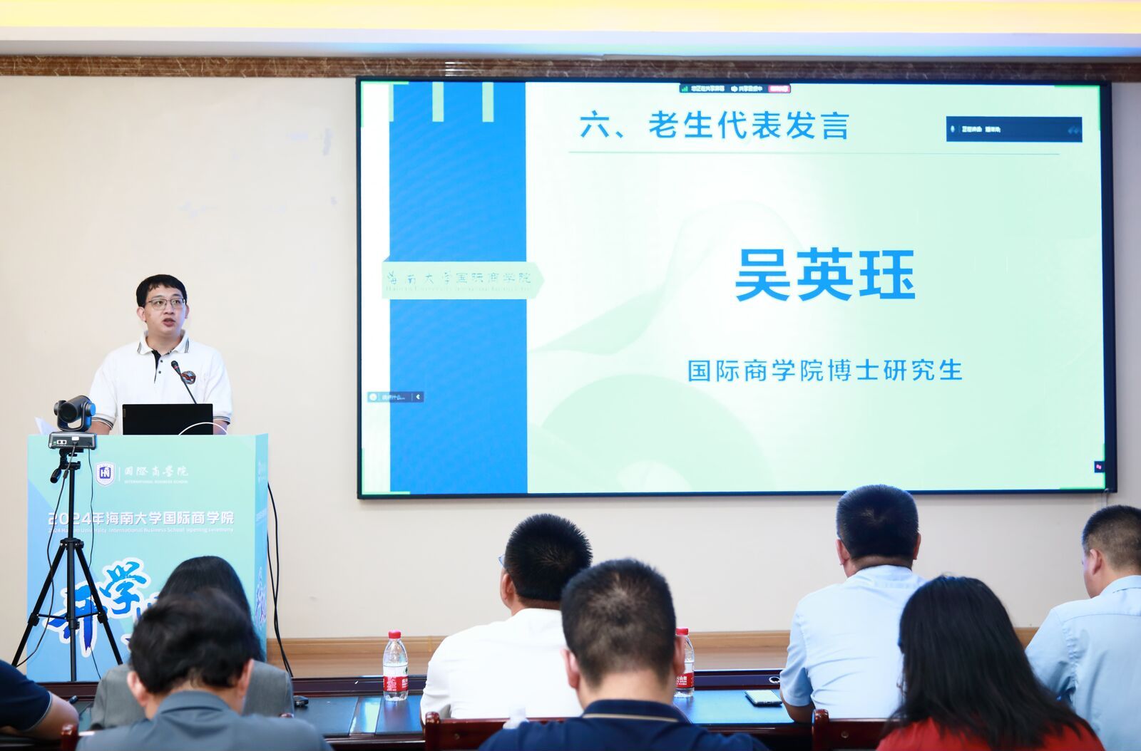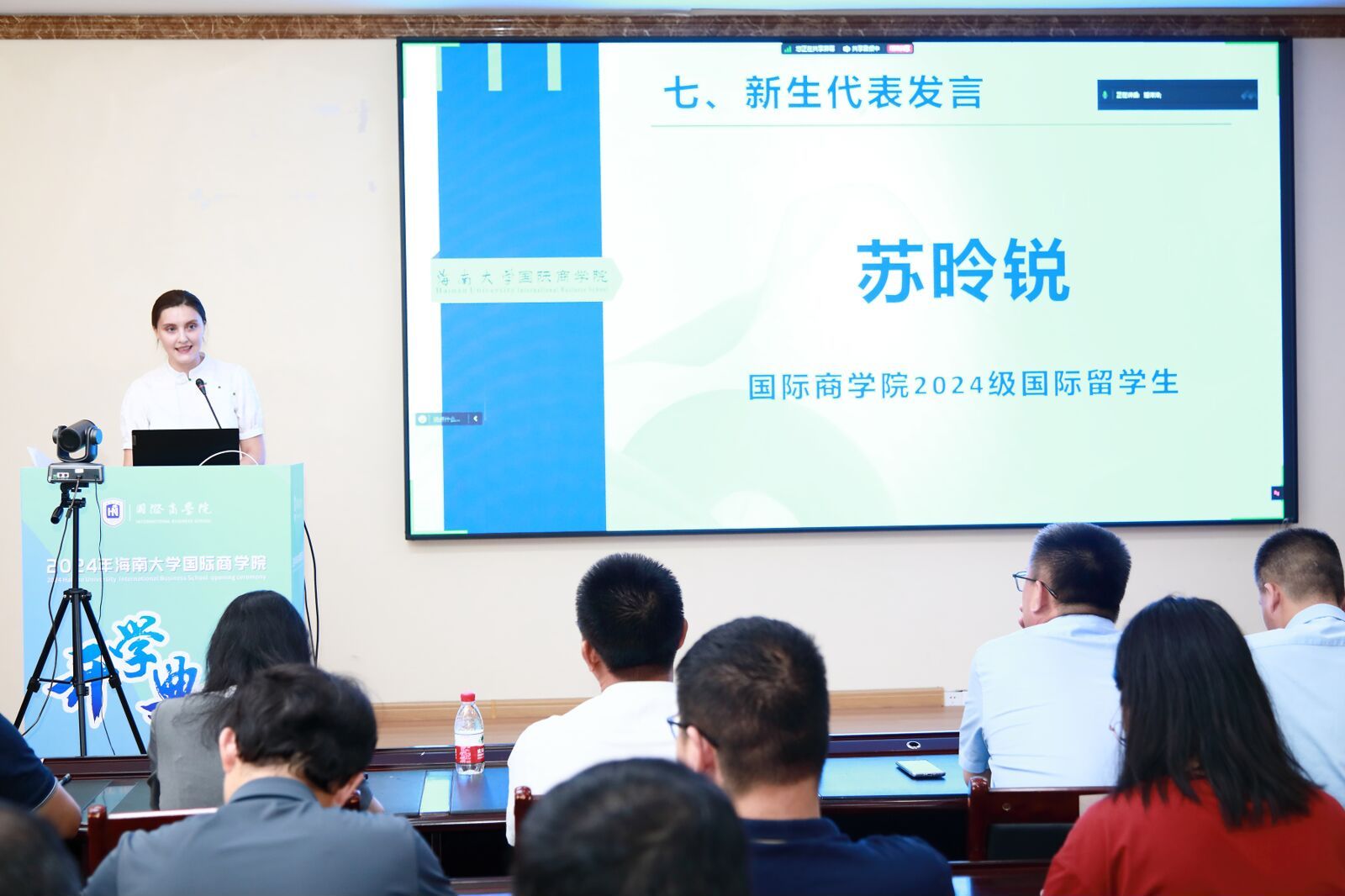 王萍副教授作为教师代表发言,寄语同学们珍惜眼前美好,懂得感恩与奉献,不断提升自己的能力,用所学知识为社会贡献自己的力量。摩羯台风的来袭,不仅考验了大家的应变能力,更激发了大家面对困难不屈不挠的精神。大家的到来,更如同雨后初晴的阳光,为公司带来了新的生机与活力,希望在日后的征途中也能并肩逐梦,共绘国商新篇章。