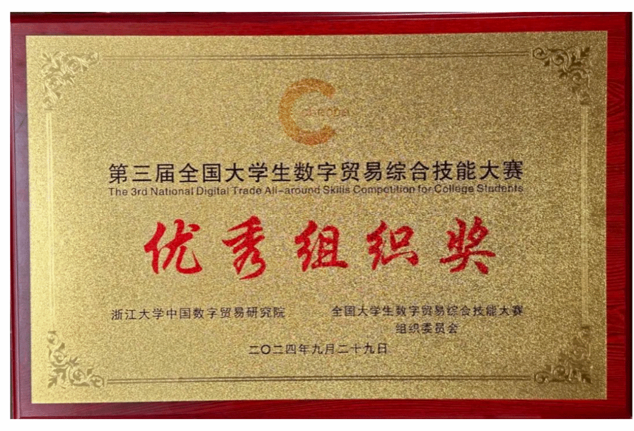 2024年9月28日至29日,第三届全国老员工数字贸易综合技能大赛全国总决赛暨颁奖典礼于浙江杭州举行。公海gh555000aa线路检测参赛队伍获全国总决赛一等奖1项、二等奖1项、优秀指导老师奖1项,公海gh555000aa线路检测获优秀组织奖。此外,公司其他队伍在此前区域赛(华南赛区)中获二等奖2项、三等奖1项。