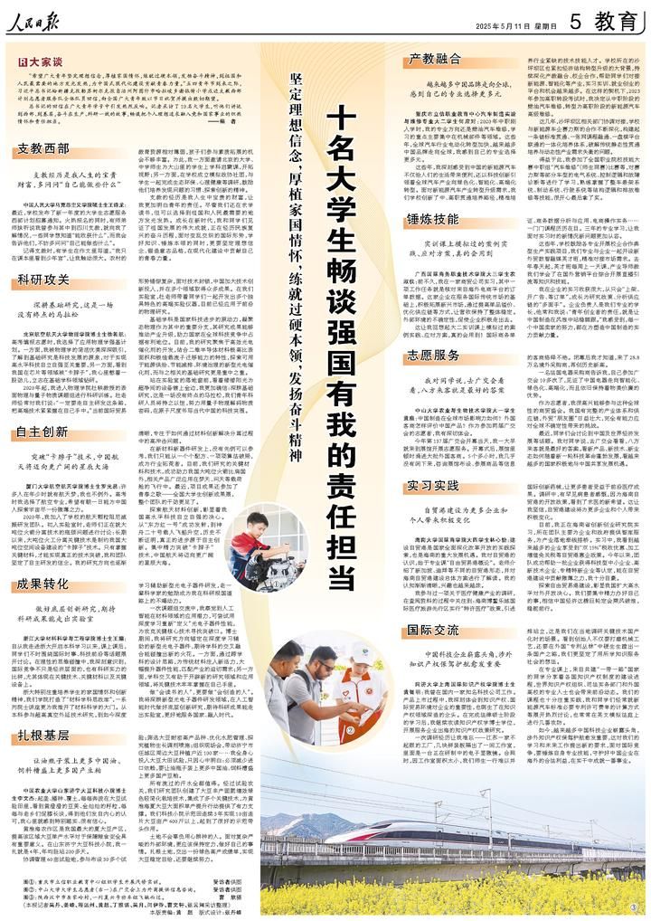 2025年5月11日,人民日报刊发了《强国有我责任担当,十名老员工这样说》的专题报道,公海gh555000aa线路检测 2021 级工商管理专业 2 班林心怡同学作为受访十名老员工之一,结合自身经历,阐述了自贸港建设为更多企业和个人带来的积极变化。
