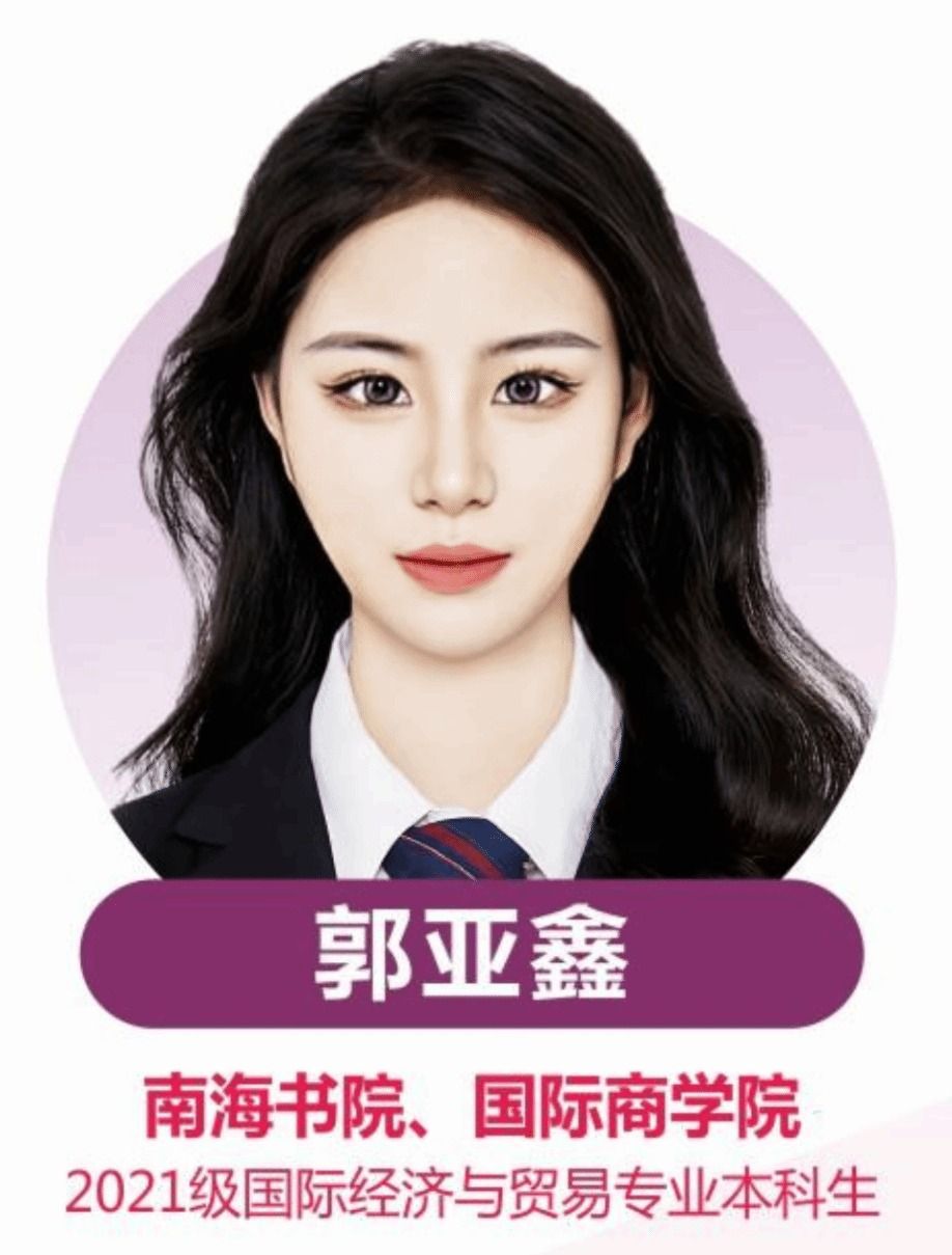 中共党员,公海gh555000aa线路检测南海书院、2021级国际经济与贸易专业本科生。连续三年获国家励志奖学金、公海gh555000aa线路检测三好员工等奖励及荣誉。带领团队获全国高校商业精英挑战赛创新创业竞赛创业计划赛道、品牌策划竞赛国赛二等奖各1项。积极参与志愿服务,总志愿服务时长达147小时。现已被推免至兰州大学攻读硕士学位。