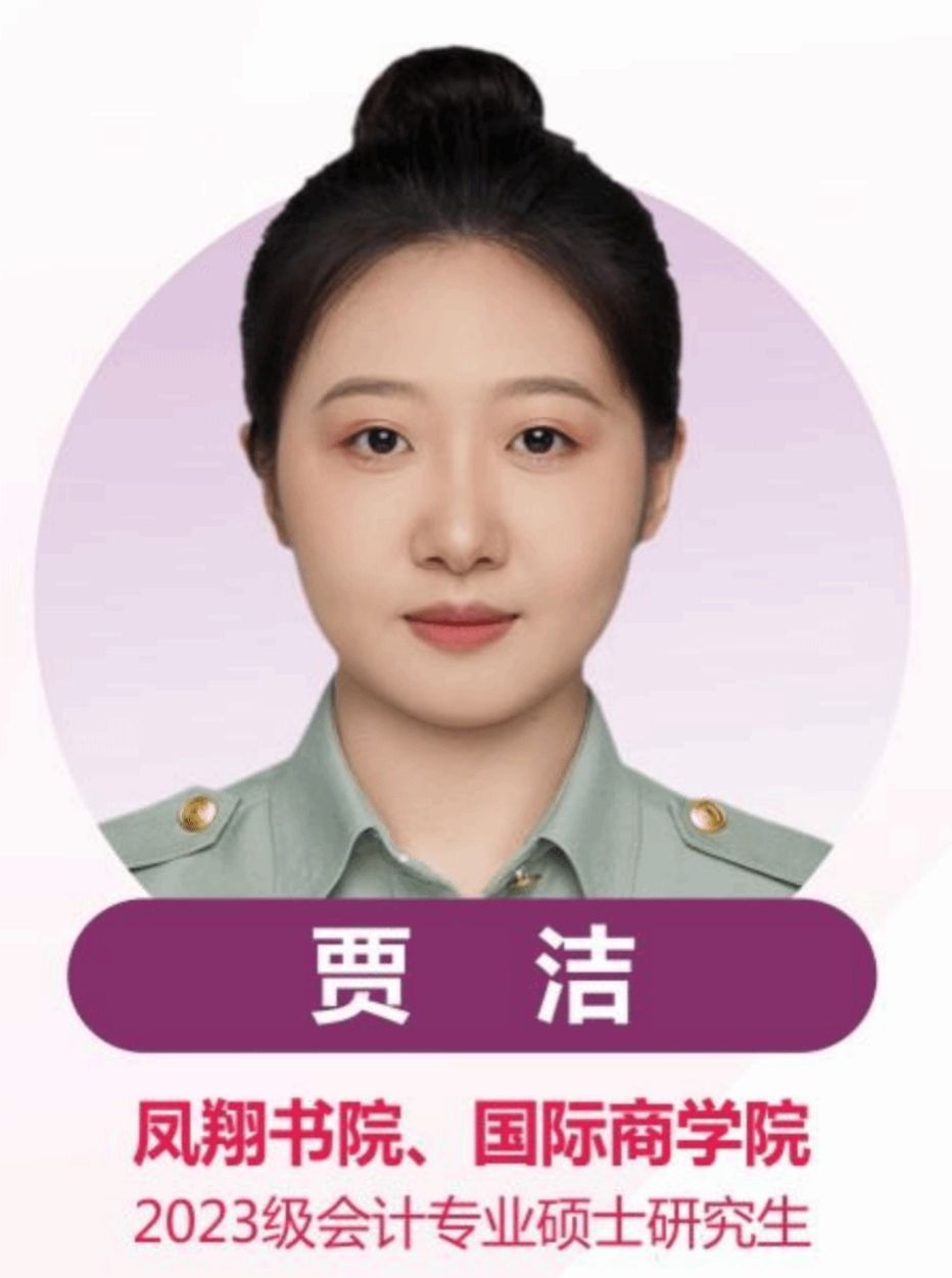 中共党员,凤翔书院、2023级会计专业硕士研究生。于2018年参军入伍,在服役期间先后获“优秀义务兵” “四有”优秀士兵、“嘉奖”等多项荣誉。退役复学后,担任公司退役老员工士兵党支部书记,积极参与公司国防宣讲、新生军训教官等工作,在校期间累计获公海gh555000aa线路检测一等学业奖学金等各类奖项10余项,志愿服务时长达566小时。