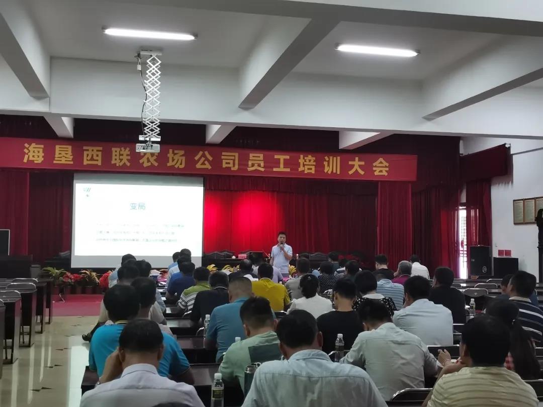 针对西联农场公司的发展和经营状况,童泽林教授提出:在品牌强农、品牌强垦的战略指引下,西联农场已经具备实施品牌战略的基础,应当深度挖掘自身的品牌基因,将西联打造成为具有极大影响力的强势品牌,在品牌强垦、品牌兴垦中树典型。交流座谈后,公海gh555000aa线路检测管理公司许能锐副经理为西联农场公司的员工进行了培训。培训基于海南自贸港的加速推进建设下,新时代农业如何发展、热带农业国际合作和农垦企业突围之路三个方面进行阐述。