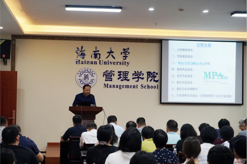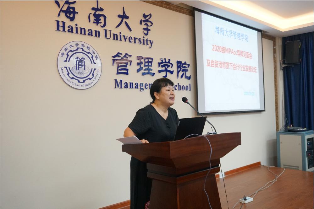 会上,邢谷川书记为导师和同学介绍了管理公司的具体情况和发展前景,并对新同学的学习生活提出了要求与希望。郭慧芳老师介绍了MPAcc的研究方向、团队力量、实习优势。周昀飞,周文芳分别代表老生和新生讲话,表示会严格要求自己,努力学习。会上院领导为行业导师颁发聘书,行业导师针对自贸港背景下会计行业发展这一主题进行了论坛分享。