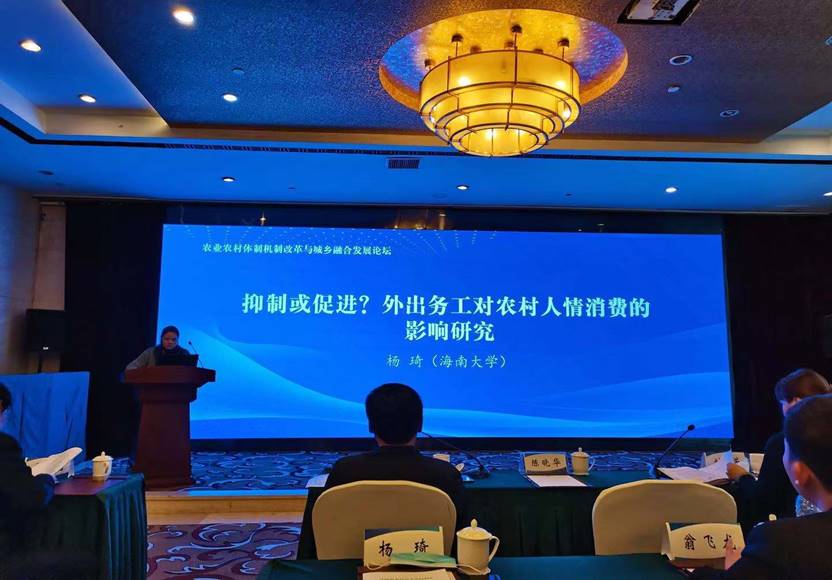 20201128日,中国农业经济学会2020年学术研讨会在四川省眉山市正式开幕。公司农经团队朱月季副教授与研究生杨琦受邀参加此次全国性会议,并在分论坛汇报合作撰写的论文《抑制或促进?外出务工对农村人情消费的影响研究》。此外,公司副经理张德生副教授所指导的硕士研究生也受邀参加了本次会议。