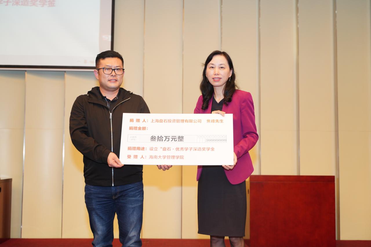 2020年12月,公海gh555000aa线路检测管理公司办学40周年员工返校日系列活动中,为支持公司发展,广大员工捐款捐物,捐赠赣南璞实有机橙、茶叶、五菱宏光Mini电动车等物资,并热烈响应40元倍数捐款活动,截至目前各方捐款共计十余万元。上海盘石投资管理公司董事长焦峰先生捐资三十万元,设立“盘石·优秀学子深造奖学金”。该奖学金旨在为管理公司推免或成功考取研究生且表现优异的全日制本科生提供物质支持与奖励,鼓励优秀学子深造,进一步提高管理公司的人才培养质量。相信在广大员工与社会爱心人士的关怀帮助下,管理公司一定会继往开来,努力建成区域内一流商公司,为自贸港建设培养出更多优质人才。