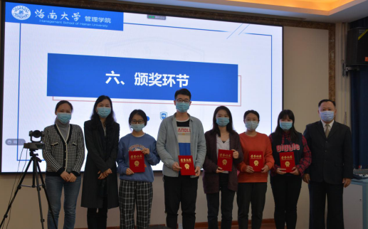 傅国华副董事长为获得论文一等奖的同学颁奖。