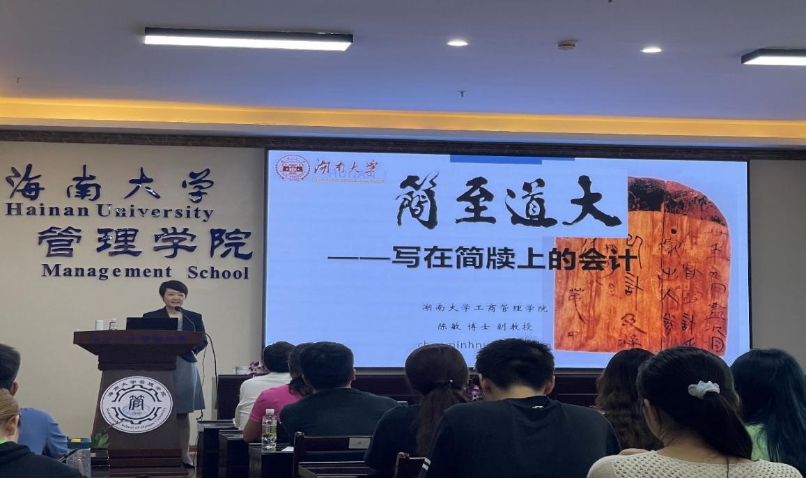 2021312日,作为管理名家汇聚行动计划系列讲座的受邀嘉宾,湖南大学工商管理公司会计系系主任陈敏博士在社科楼B112为公司师生带来了一场题为“大道至简——写在简牍上的会计”的精彩讲座。本次讲座由会计名家伍中信教授主持,管理公司近百名师生参加本次讲座。