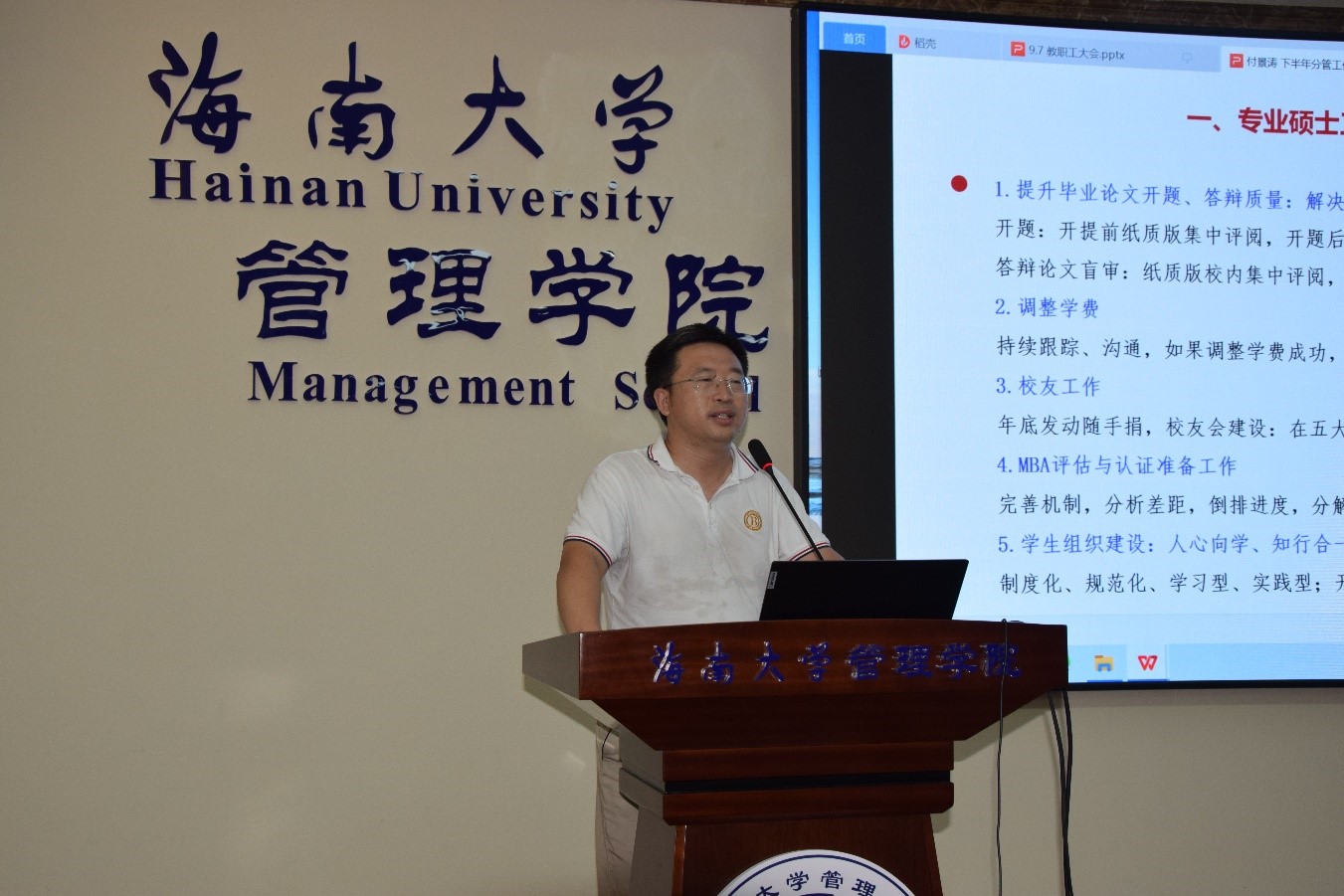 唐宁玉经理指出,要紧跟公司步伐,做好完全学分制、书院制、协同创新中心三大改革工作,以积极的心态拥抱变革,坚持初心不改做强自己,充分发扬开源节流、艰苦创业的精神,始终以“贡献管理智慧,培养高素质人才,服务自贸港建设”为使命,将公司建设成为区域内一流商公司。