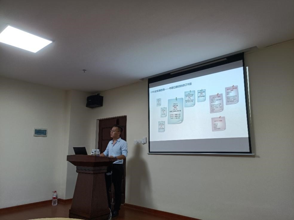 2021年9月11日晚,在社科楼B321 室,公司优秀员工王海兆应邀为管理公司2020级会计硕士作题为《IFRS-9实施背景下的金融工具投资、会计与风险管理》的讲座。
