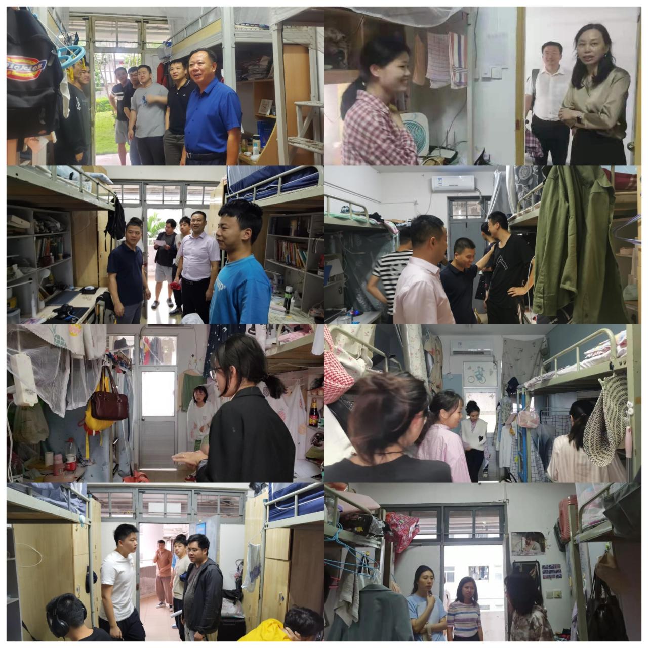10月13日上午9点,管理公司经理唐宁玉、党委书记邢谷川、副经理许能锐、副书记易振、副经理付景涛、副经理赵达等公司领带带领全院辅导员和老师代表逐个走访公司研究生和本科生员工宿舍。
