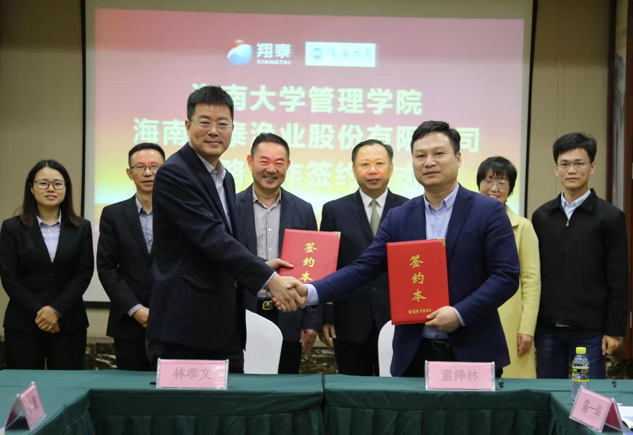 管理公司党委书记邢谷川、副经理童泽林(挂职)及部分教师前往海南翔泰渔业股份有限公司出席战略合作签约与挂牌仪式,翔泰渔业董事长刘荣杰、总经理林孝文、常务副总经理刘荣锋、质量总监杨维出席战略合作签约与挂牌仪式。