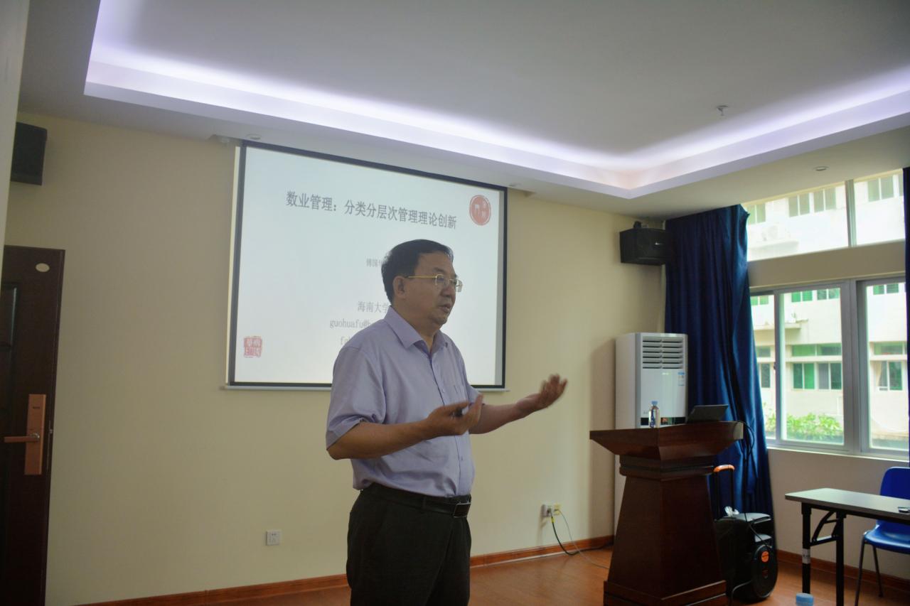 傅国华教授此次分享的分类分层次管理理论是其数十年的潜心研究成果。他的研究团队曾分别对海南十八个市县和全国32个省区的分层次发展进行了考察。他于2013年出版《分层次管理》专著,首次提出分类分层次管理理论,引起了学界的关注和热议。近些年他对“分层次管理”研究进行了扩展,提升到了“分类分层次管理”研究上;拓展到“精准用理”的“五理新论”:道理、伦理、治理、管理、处理上,提出分类分层次精准用理。