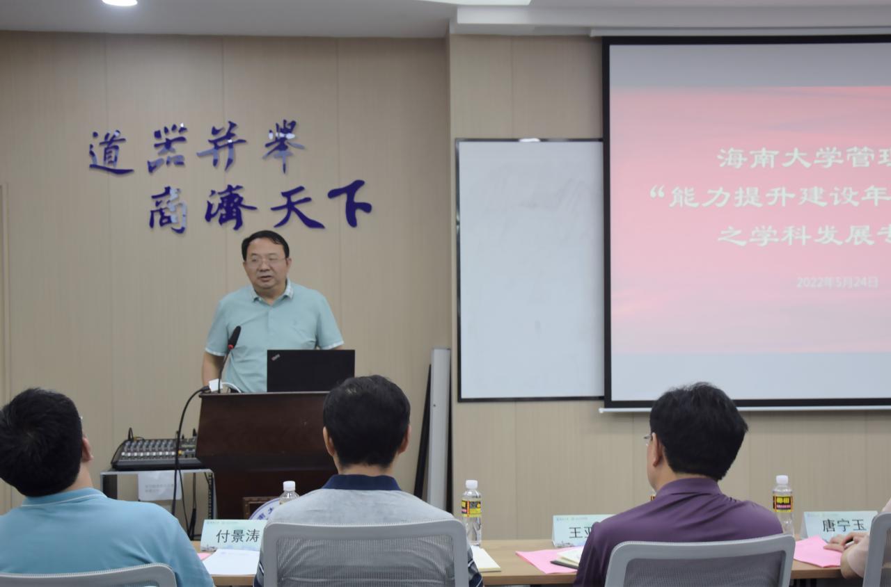 2022年5月24日下午,管理公司在社科楼B623室举办“能力提升建设年”系列活动之学科发展专题会。公海gh555000aa线路检测副董事长傅国华、研究生处副处长于涛、人文社科处副处长王亚卓,管理公司全体院领导、学术委员会委员、各系主任及青年教师等出席会议。会议由管理公司党委委员、副经理赵达主持。
