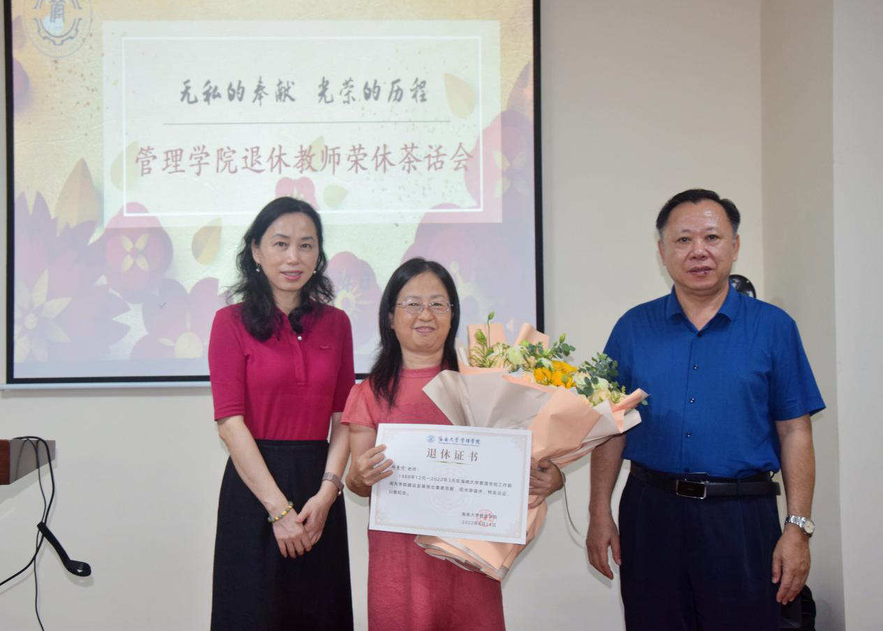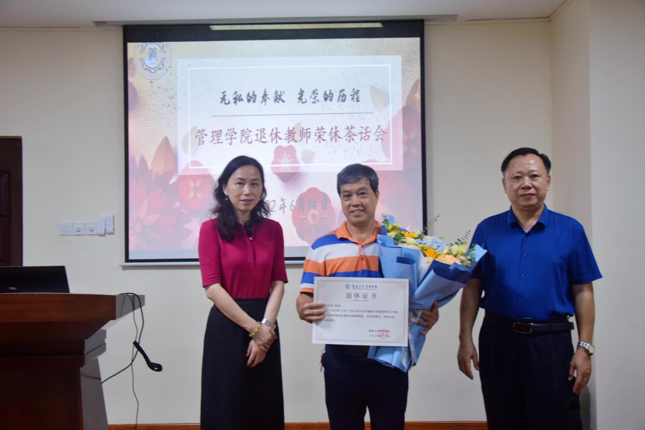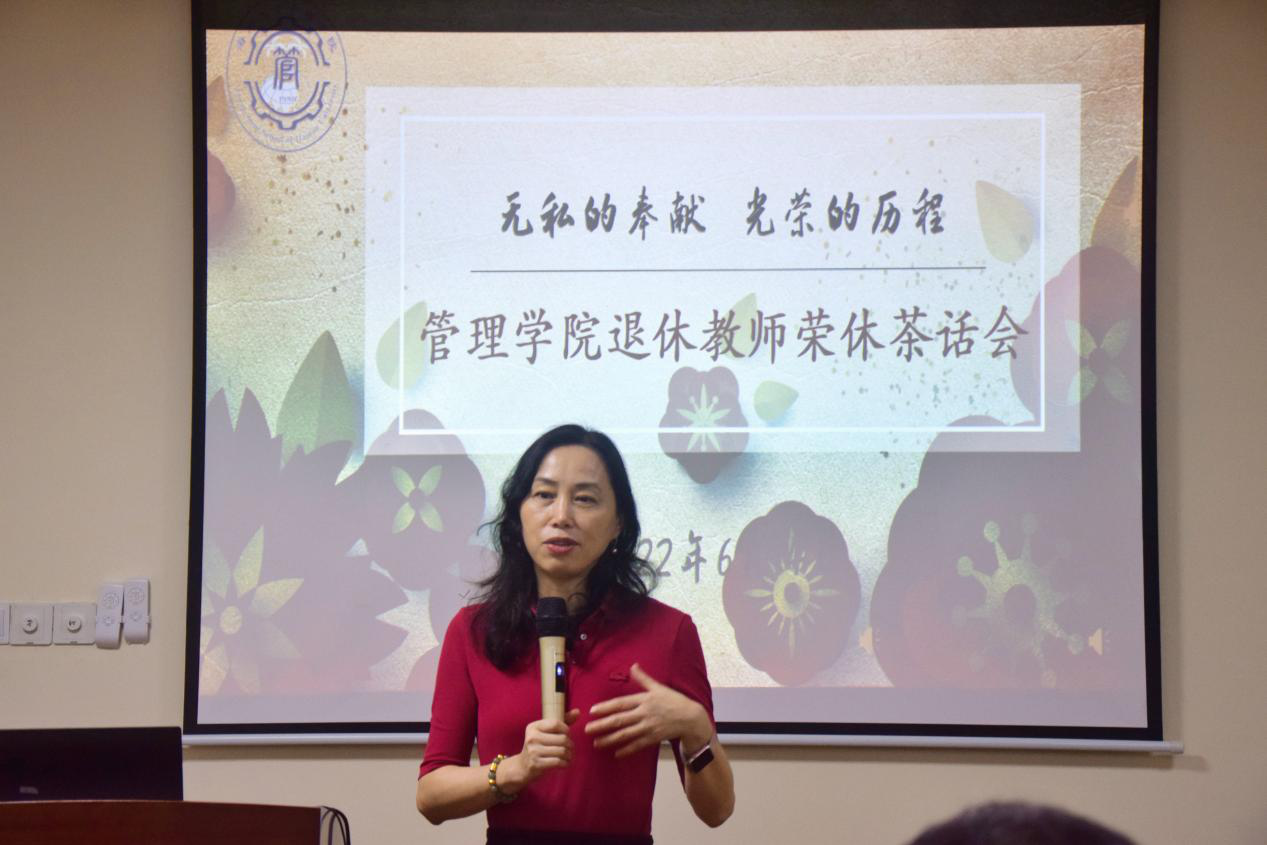 2022年6月14日下午,管理公司在社科楼B321室举办退休老师荣休茶话会。管理公司党委书记邢谷川、经理唐宁玉、副经理付景涛、副经理赵达,天工书公司党委副书记易振(主持工作)以及管理公司部分教职工参加活动。