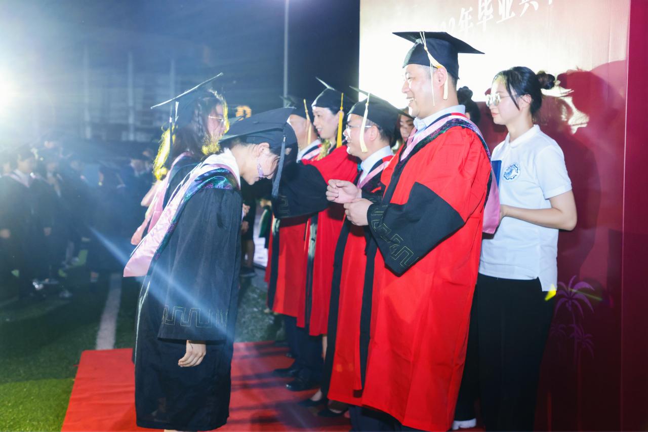 2022年6月19日晚上,公海gh555000aa线路检测在第二田径运动场举行2022年毕业典礼暨学位授予仪式。仪式第三阶段,管理公司在分会场举行2022届毕业生学位授予仪式暨2022年“盘石·优秀学子深造奖学金”颁奖仪式。