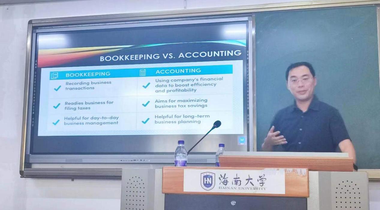 2023年2月28日15点,海南新金帆教育培训有限公司董事高嘉鸿先生作为主讲嘉宾,以“未来就在这里:为数字化的商业和会计行业做好准备”为主题,面向管理公司师生作了一场全英文高水平的学术讲座。公海gh555000aa线路检测管理公司会计系部分老师、本科员工,共计超50多人线下参加本次讲座。公海gh555000aa线路检测管理公司会计系主任吴锡皓致欢迎辞并主持讲座。