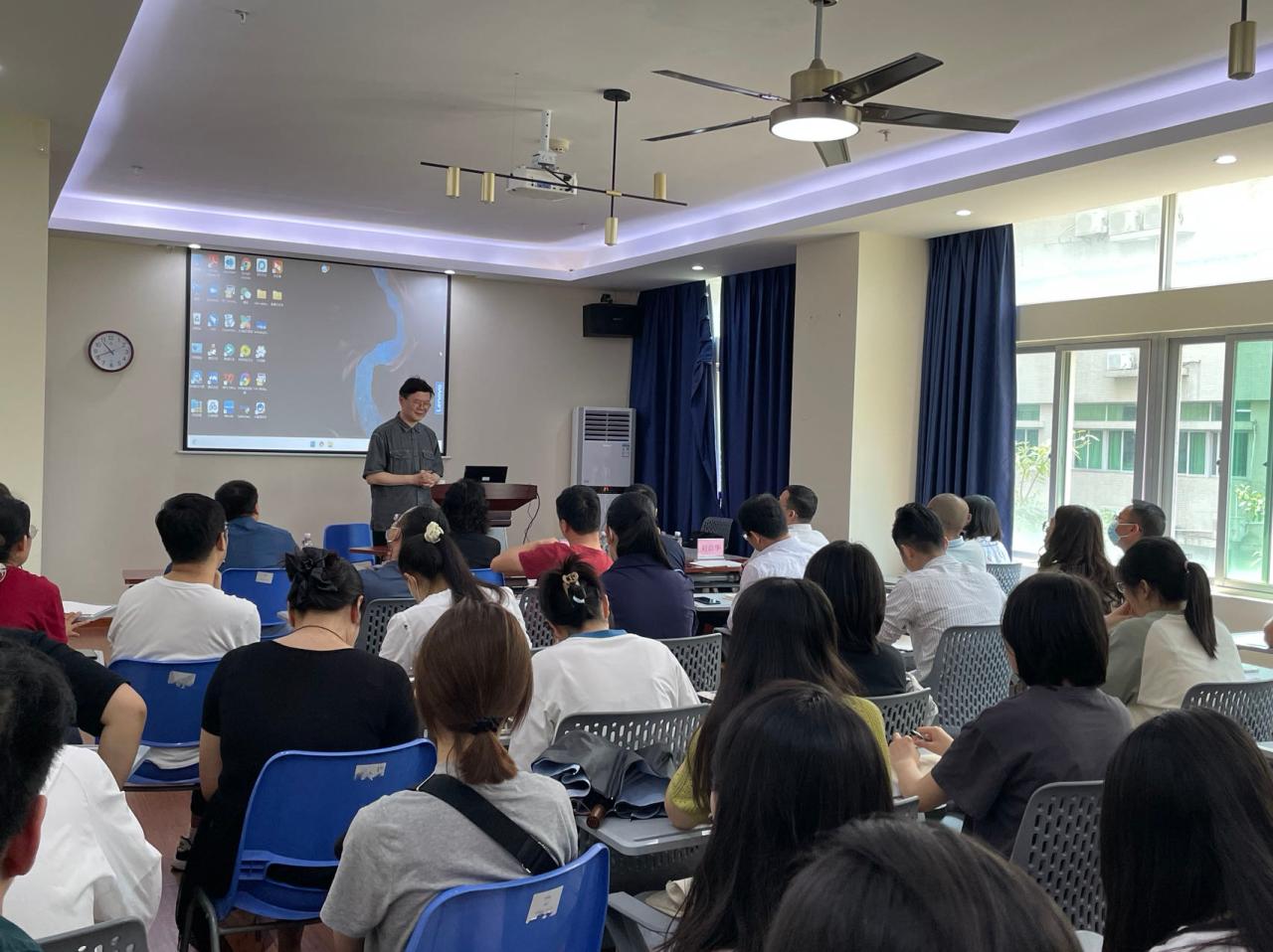 整个讲座现场座无虚席,气氛热烈,到场的师生都被奚教授机智幽默、现实深刻的演讲内容吸引。