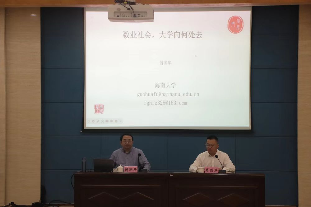 3月24日上午,傅国华教授为广西财经公司经济与贸易公司师生作《数业社会,大学向何处去》主题讲座,广西财经公司副董事长夏国恩教授主持。傅国华教授由农业、工业演进进程创新提出 “数业”概念,构建了 “三数理论”,以数业经济、数业社会、数业文明为框架,提出了数字经济是将数源生产为数品,通过数业平台进行交易、消费与结算创造经济财富的一种新经济。