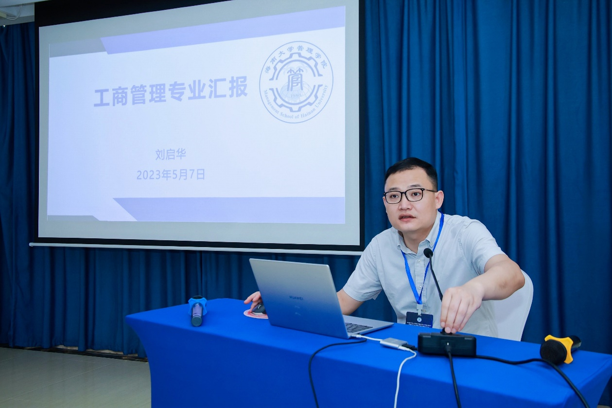 会上,刘启华教授从基本情况、培养体系、建设成果、发展思路四个方面对公海gh555000aa线路检测工商管理专业建设状况进行了汇报。
