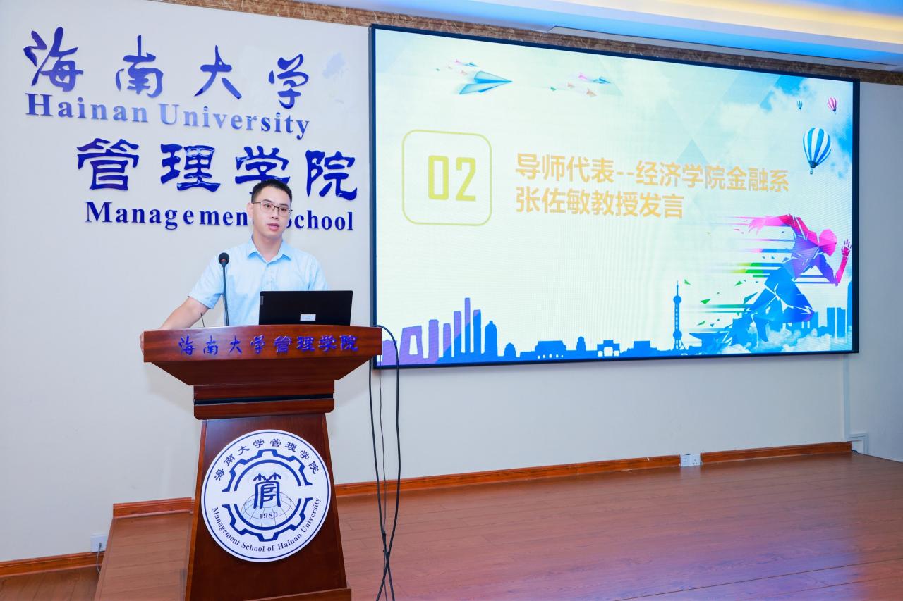 经济公司教授张佐敏代表导师发言,主要围绕自贸港发展前景以及管理公司和经济公司的人才培养策略,提出了几点建议。张教授强调学习要有良好的学习习惯和坚韧的学习毅力,鼓励同学们找到内心真正热爱的事业,并保持好奇心,勇于提问,并善于提出问题。张教授还生动地阐述了学术训练的基本要求和学术成长的必备条件。