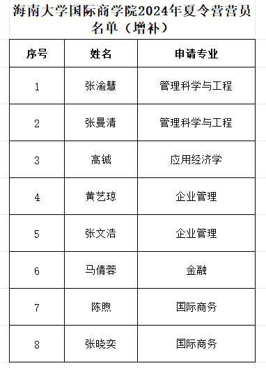 因部分同学自愿放弃入营资格,经资格审核及综合评审,现增补以下