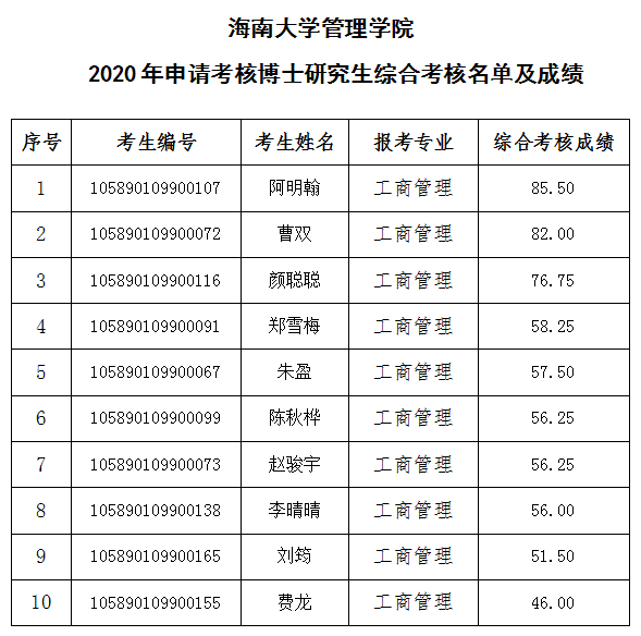 公海gh555000aa线路检测管理公司2020年申请考核博士研究生综合考核名单及成绩
