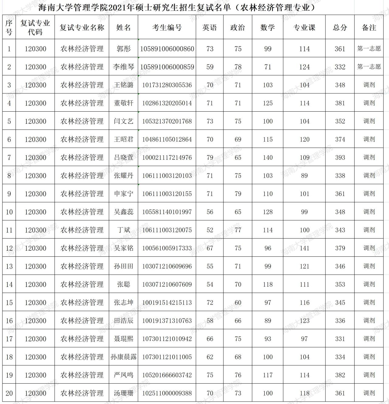 公海gh555000aa线路检测管理公司2021年硕士研究生招生复试名单(农林经济管理专业)