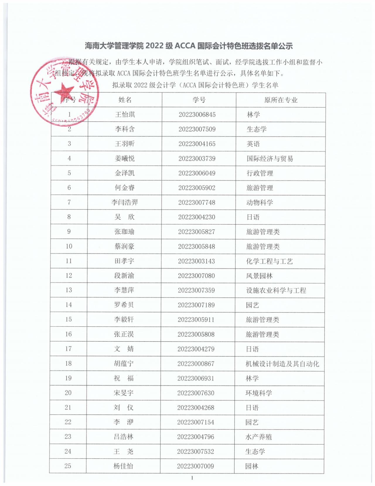 公海gh555000aa线路检测管理公司2022级ACCA国际会计特色班选拔名单公示