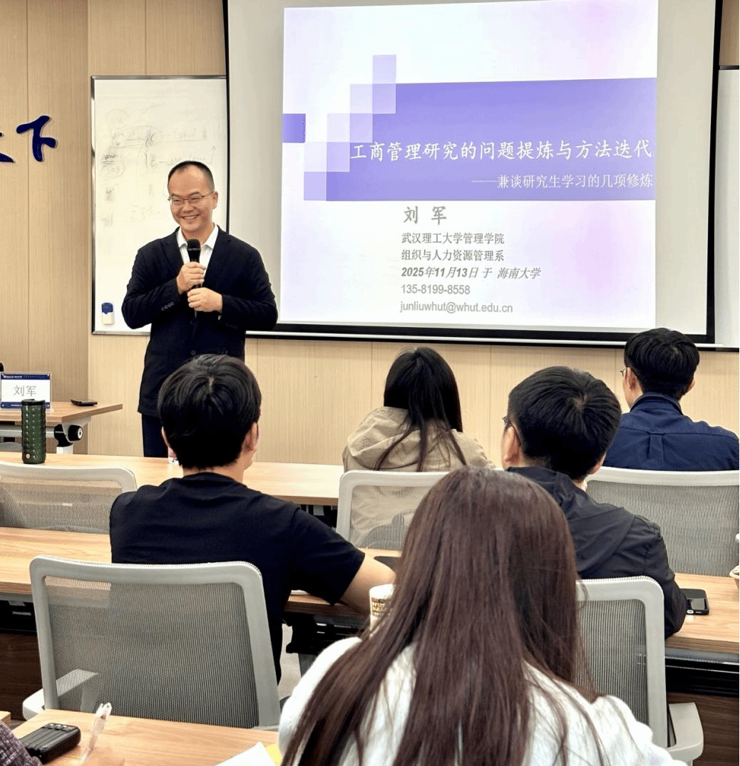 11月13日下午,公海gh555000aa线路检测工商管理研究沙龙活动在社科楼B623顺利举办。武汉理工大学管理公司刘军教授应邀主讲。以“工商管理研究的问题提炼与方法迭代”为题。为公司师生带来一场兼具理论深度与实践指导意义的学术盛宴。本次工商管理系学术沙龙活动由公司副经理付景涛教授主持。