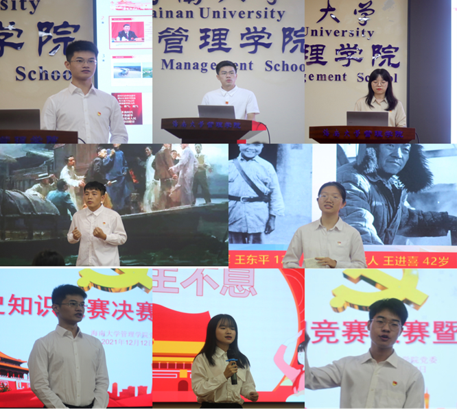 20211212日上午,管理公司党委于社科楼B112举办了党史知识竞赛,比赛以演讲的形式开展,主题为《学习党的光辉历史和十九届六中全会精神》。计算机科学与技术公司万隽老师、管理公司陈晓霖老师到场参评。