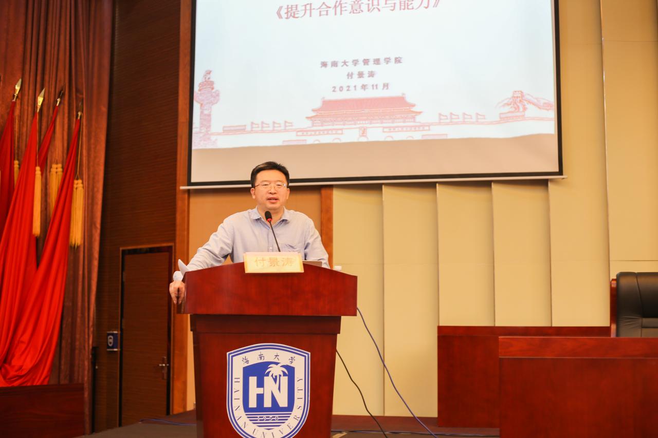 课上,付景涛结合员工与公司发展,围绕“什么是合作,为什么合作”的基本问题,对如何在实践中提升合作能力提出七点建议:一是克己奉公,从大局着眼;二是注重沟通能力;三是尊重及理解伙伴;四是保持谦逊;五是加强信任;六是保护集体利益;七是坚定目标,不忘初心。他指出,合作不仅有利于个人的进步,更是社会与国家发展的必要推动力。