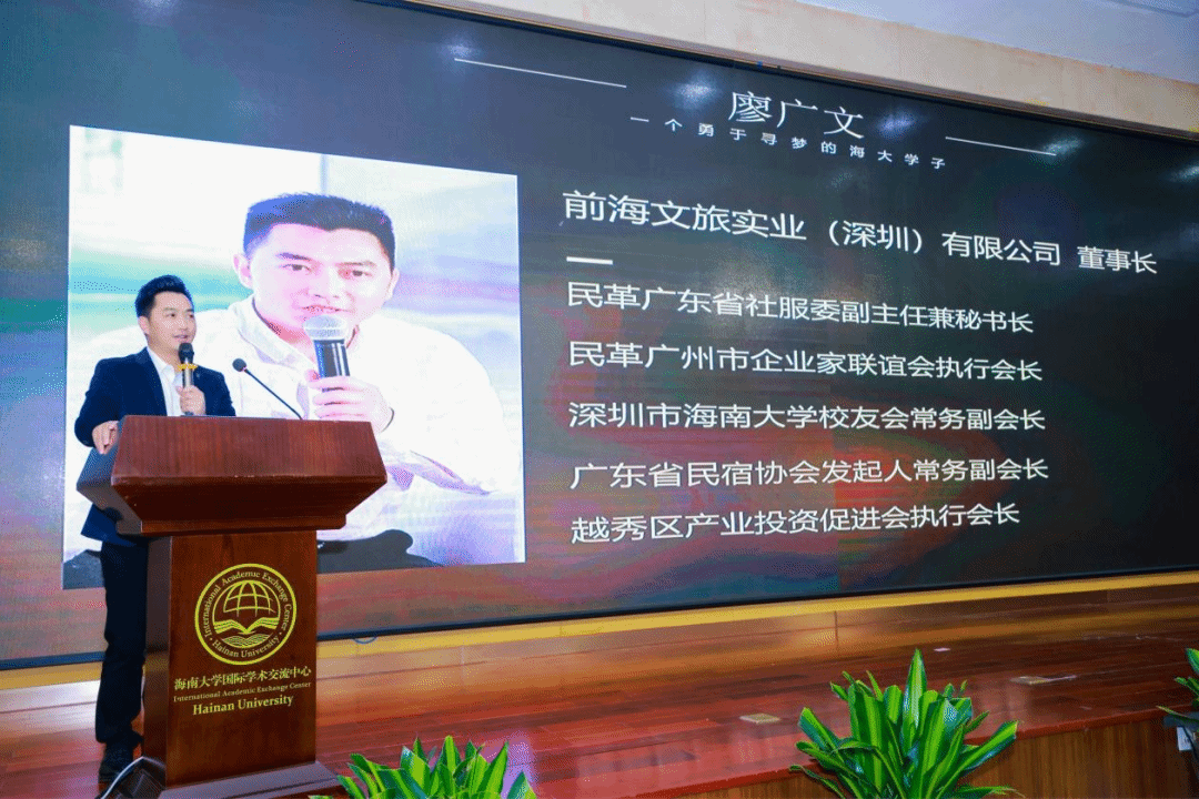 2009级农林经济管理专业员工、前海文旅实业(深圳)有限公司董事长廖广文表示,大学永远是一个学子的精神母体,员工会的成立更是“精神的灯塔、情感的家园、营养的脐带、合作的平台”,他期待员工会未来更新的发展,并总结到“母校,是我们成长的摇篮,是我们心灵的港湾,是我们永远无法忘记的牵挂和留恋”。