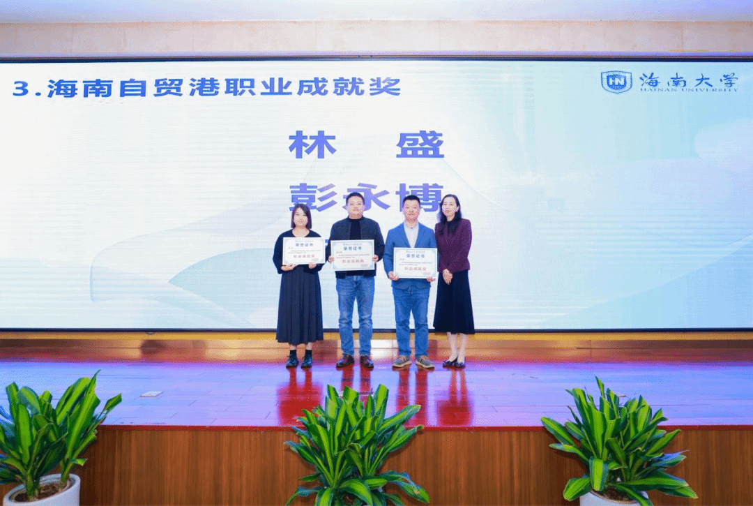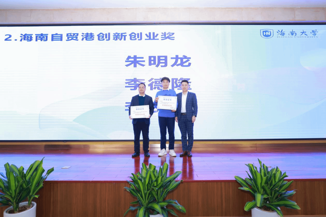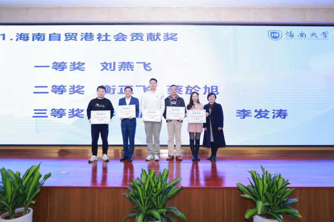 主题演讲结束后举行了海南自贸港创新创业颁奖,俞花美处长、赵小宝总经理、唐宁玉经理为各奖项获得者颁奖。