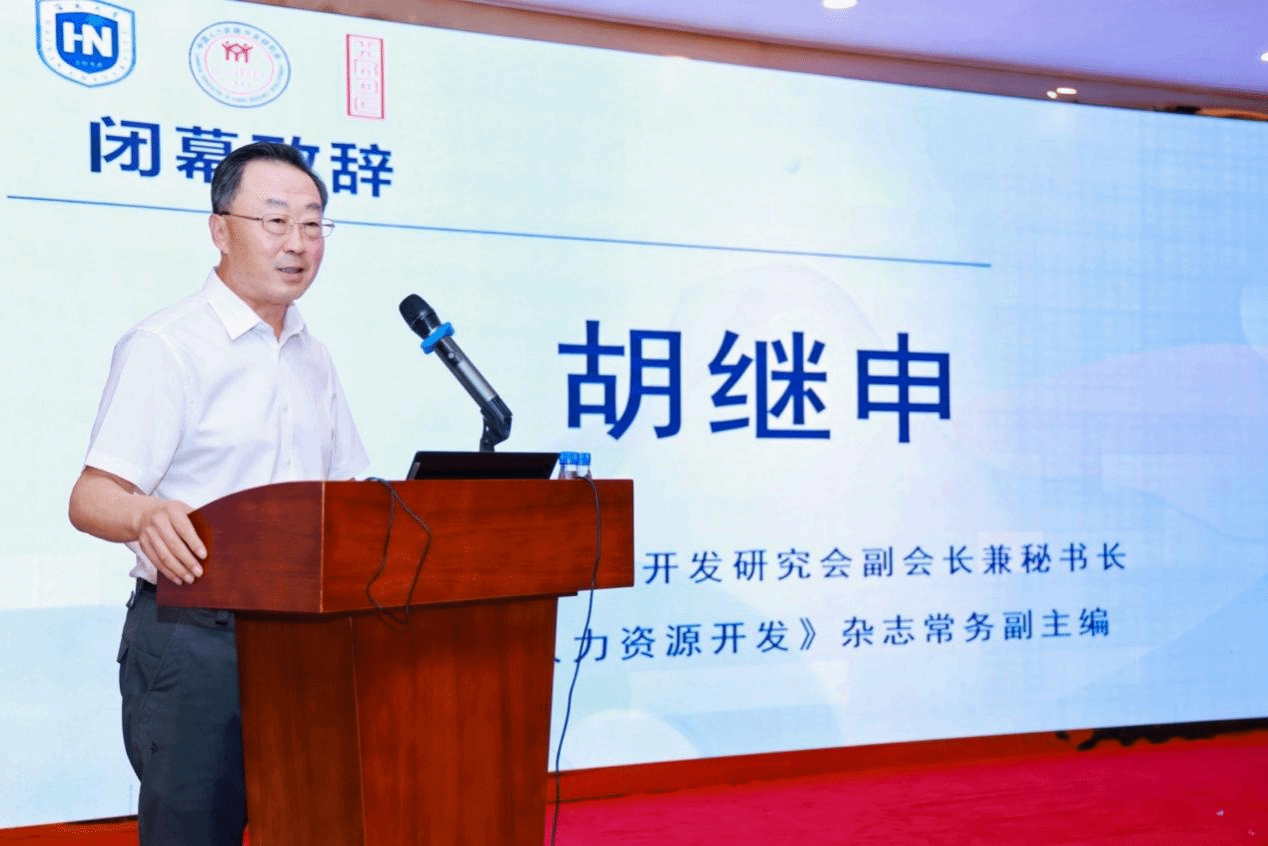 颁奖仪式结束后,中国人力资源开发研究会副会长兼秘书长、《中国人力资源开发》杂志常务副主编胡继申进行闭幕式致辞并作会议总结。他高度评价了本次年会,认为体现出参与广泛、交流深入、守正创新的特点,学术年会不仅拓展了参与者的视野,而且加深了相互间的理解和不同学术观点的交流。他指出,未来应进一步更新和凝练人力资源开发的研究方向,积极推广优秀论文,共同提升杂志质量。最后,他向《中国人力资源开发》杂志社、承办单位公海gh555000aa线路检测和Credamo见数,以及向大会提供帮助的各界人士表示衷心的感谢。