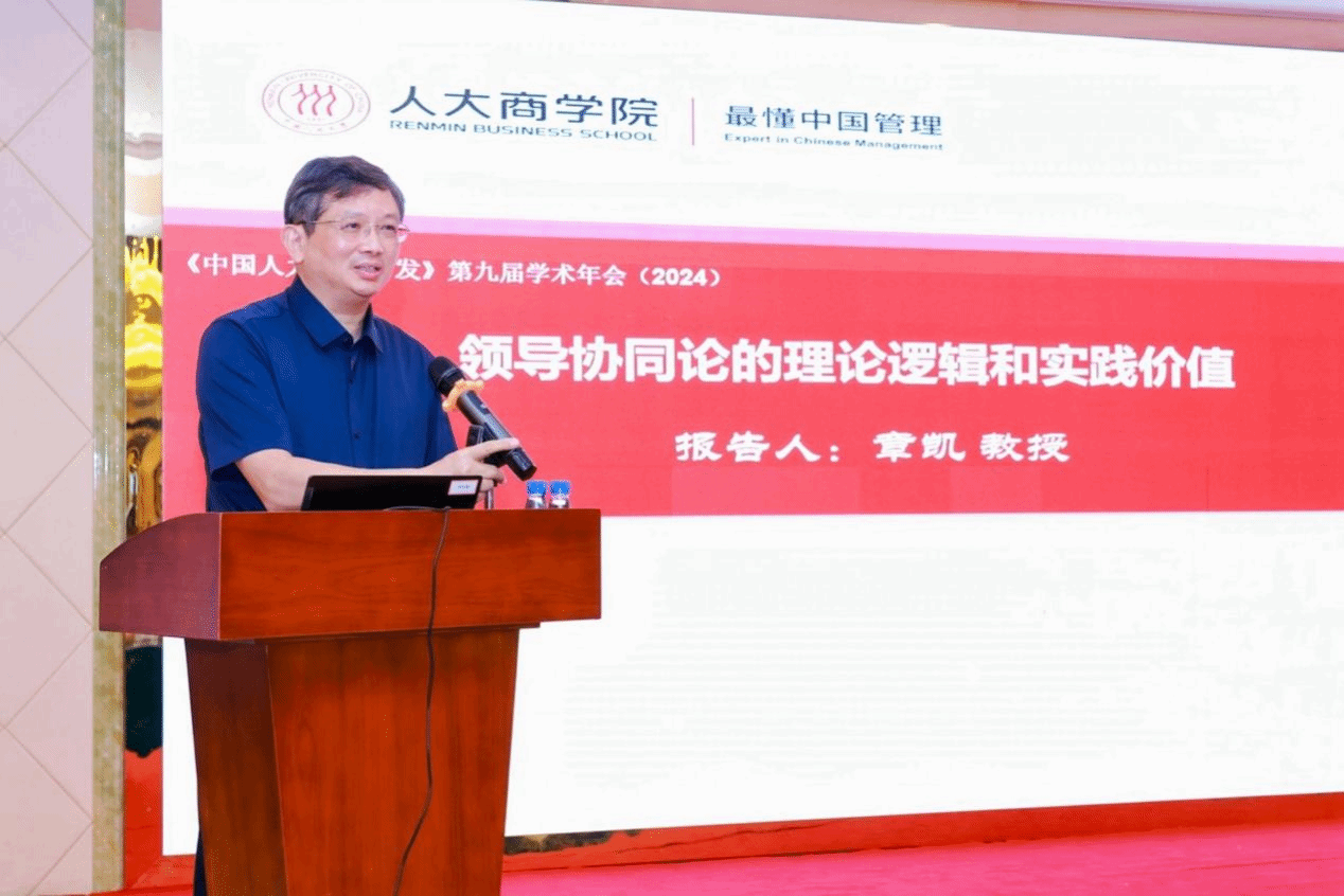 中国人民大学商公司章凯教授作了题为“领导协同论的理论逻辑与实践价值”的主题报告。他认为领导协同论是一个新的发展方向,强调领导者应作为资源整合者促进团队协同,同时分享了关于管理理论构建的哲学思考,为管理理论与实践创新提供新视角。