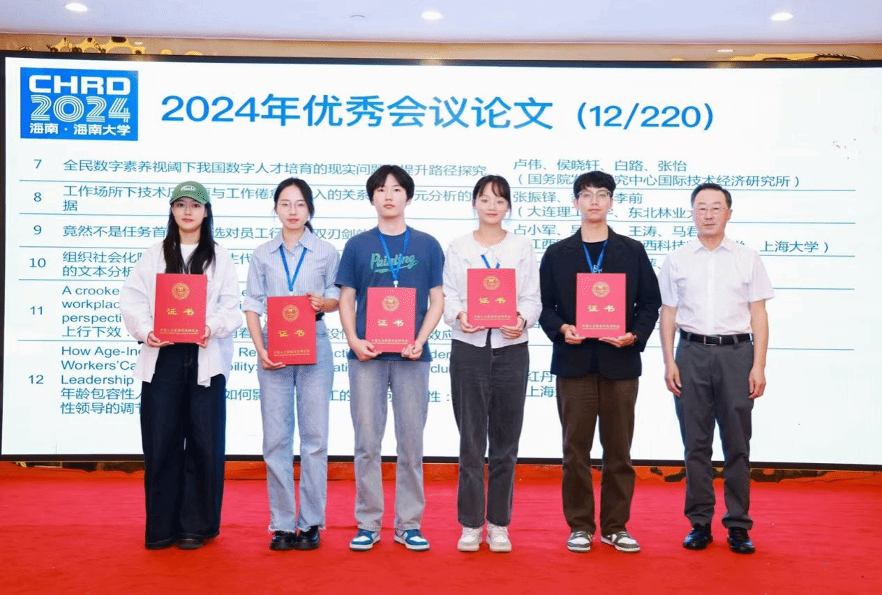 本次年会设立优秀会议论文奖,经过专家多轮匿名评审选出12篇优秀会议论文,由中国人力资源开发研究会副会长、《中国人力资源开发》常务副主编胡继申和公海gh555000aa线路检测经理唐宁玉教授为12偏优秀会议论文作者颁奖。同时,还评选出《中国人力资源开发》2023年发表的5篇优秀论文,由中国人力资源开发研究会会长、《中国人力资源开发》主编欧晓理为获奖论文作者颁奖。