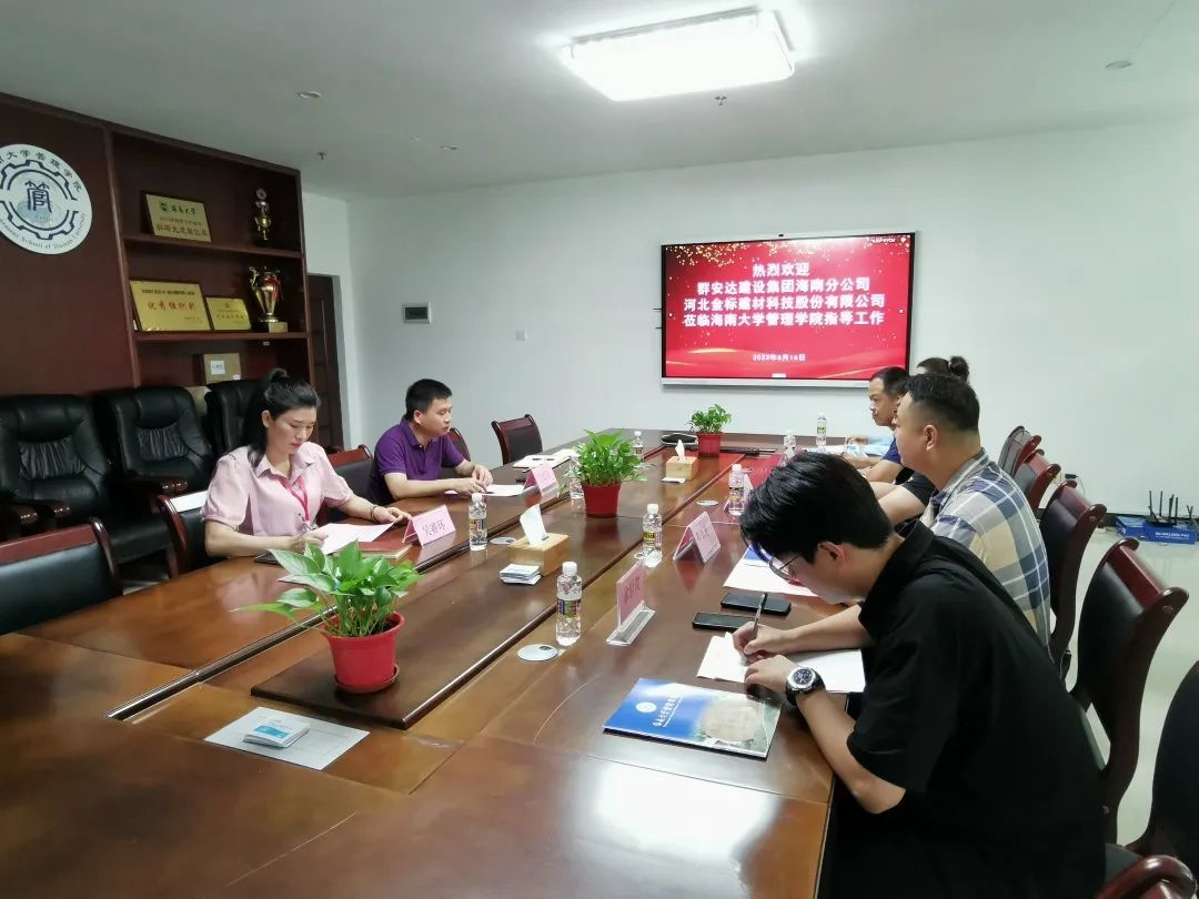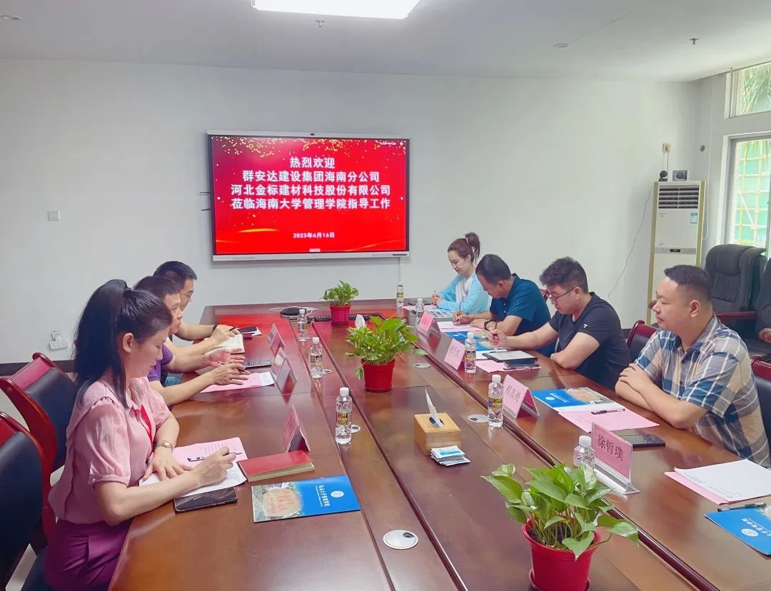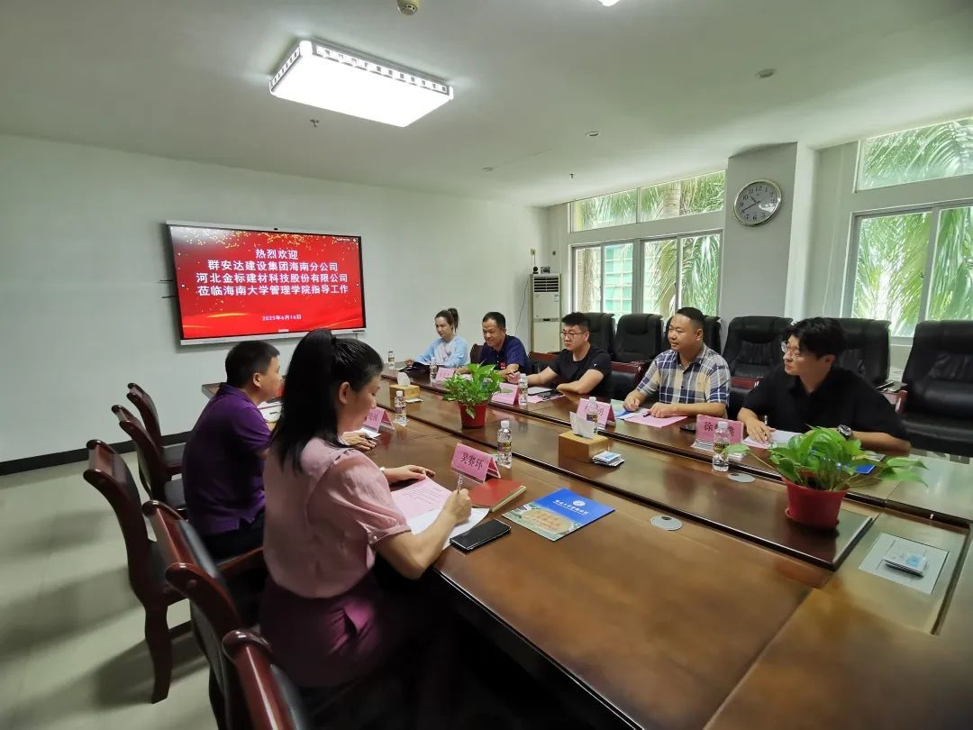 2023年6月16日上午,群安达建设集团海南分公司总经理程真勇、河北金标建材科技股份有限公司(简称金标股份)董事长逯千里、金标股份海南分公司总经理崔建才一行五人到公海gh555000aa线路检测管理公司就产学研合作事宜洽谈交流。公海gh555000aa线路检测管理公司副经理许能锐教授、管理公司EDP中心副主任黎光灵、自贸港工商管理领航班项目负责人吴赛环参加交流会。