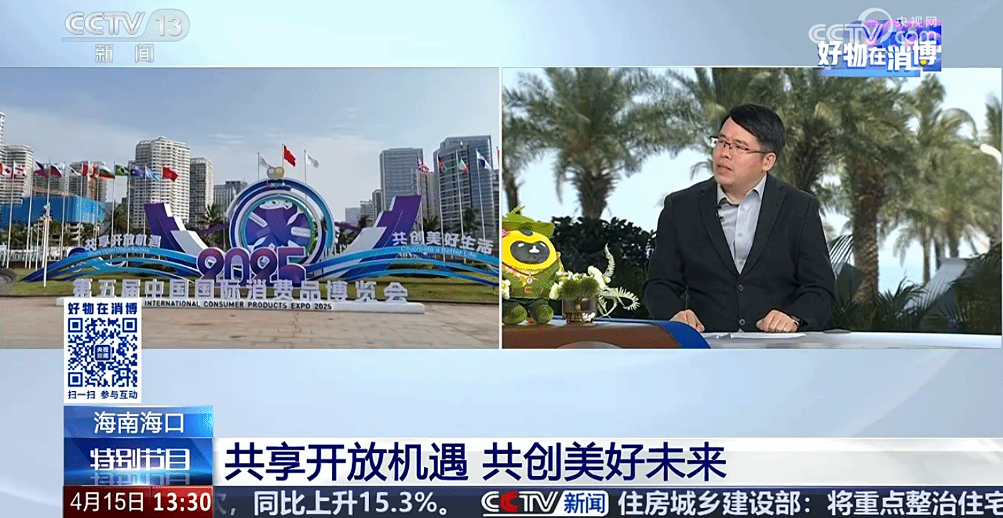 2025年4月15日,在央视新闻频道特别节目《好物在消博》中,央视主持人胡蝶对公司颜洪平教授进行专访: