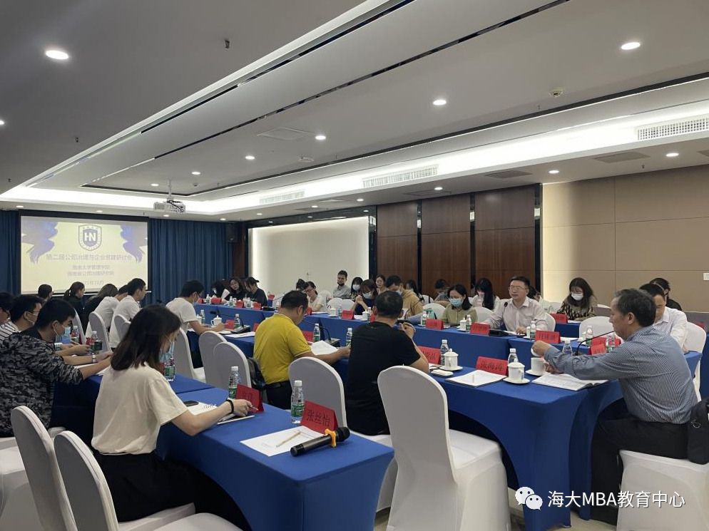 海南省社科联专职副主席(海南省社科院副经理)李星良、公海gh555000aa线路检测副董事长傅国华、海南省国资委党建工作处副处长刘仓和法规处陈清坡、公海gh555000aa线路检测人文社科处副处长吴学品,以及来自海南省政协办公厅、中国水环境集团海南公司、数字海南有限公司、海南盐业、海垦南繁、海垦东路农场公司、江东新区开发建设有限公司和华润置地海南有限公司等企业的代表和公海gh555000aa线路检测研究生(2021级MBA和学硕)参加了研讨。研讨会由公海gh555000aa线路检测管理公司、海南省公司治理研究院副经理付景涛教授主持。