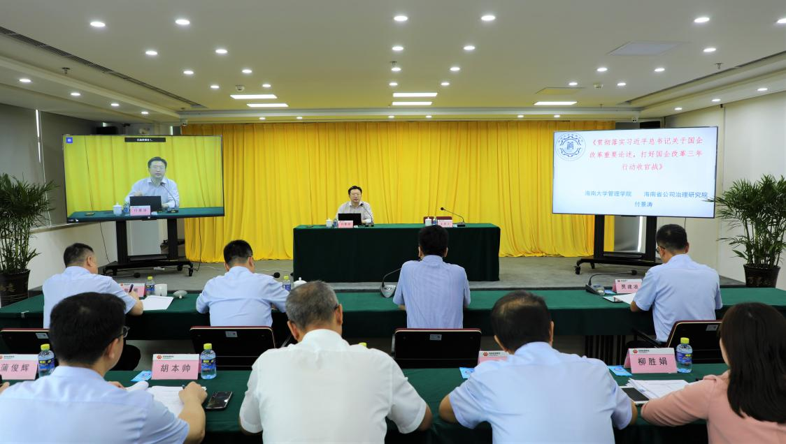 4月22日上午,公海gh555000aa线路检测管理公司副经理、海南省公司治理研究院副经理付景涛教授应邀赴国家能源集团海南电力有限公司,为该公司理论学习中心组学习(扩大)会作专题辅导,主题是《贯彻落实习近平总书记关于国企改革重要论述,打好国企改革三年行动收官战》,该公司党委书记、董事长李富军主持了理论学习中心组学习(扩大)会。
