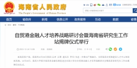2023年12月23日下午,公海gh555000aa线路检测联合海南省金融发展促进会在海口共同举办“自贸港金融人才培养战略研讨会暨海南省研究生工作站揭牌启动仪式”。为更好地对标海南自贸港建设要求,公海gh555000aa线路检测金融学科积极谋划推动产学研合作,高起点培养自贸港金融人才。会议围绕海南省人才建设与海南研究生工作站未来的发展计划、风险管理师职业教育的重要性、风险管理师人才的培养等议题展开讨论,与会人员一起探讨了海南自贸港人才队伍建设与发展的新路径,共同为自贸港建设贡献人才力量。