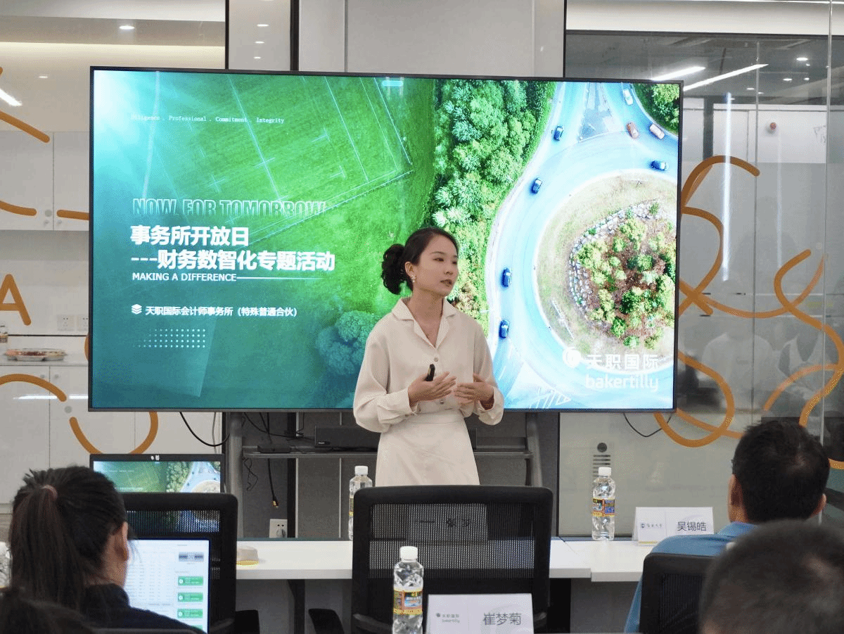 天职国际主讲人卢茜女士从发展历史、业务范围及什么是财务数智化等方面介绍了天职国际海南所的情况。各业务骨干简述了天职各部门的核心工作内容,重点分享了数智化运营中心、作业中台和函证平台等事务所数智化建设的基本情况。