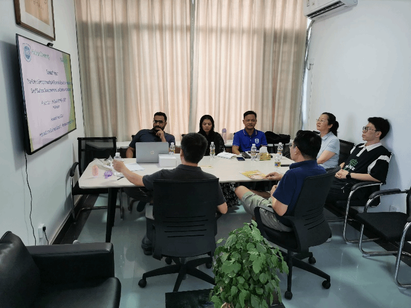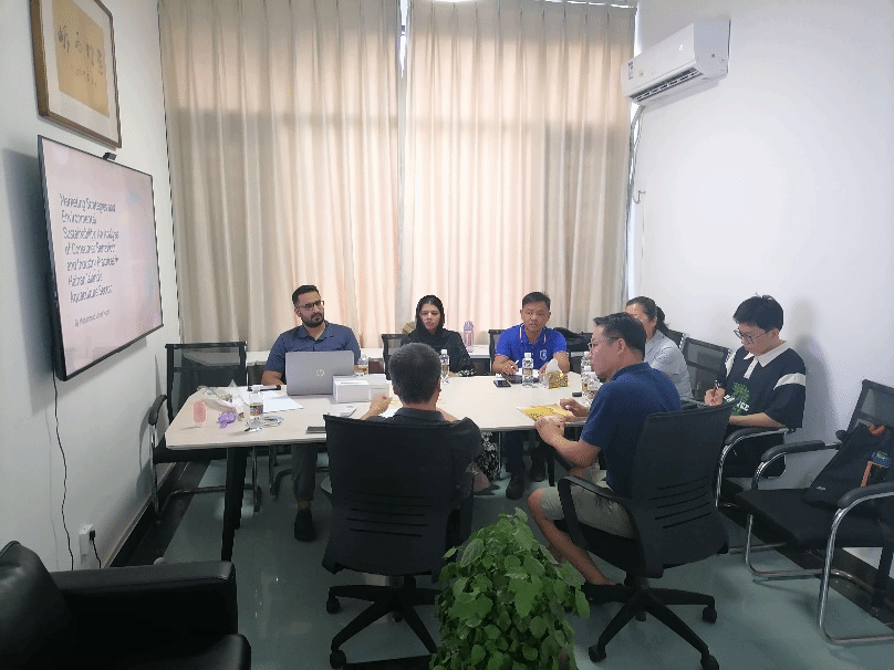 之后,由工商管理专业博士研究生王娇龙(巴基斯坦职工)进行主题汇报,内容为海南岛水产养殖行业的市场营销策略与环境可持续性之间的关系。该项研究主要分析了消费者行为、行业实践和监管框架,以期提出促进商业目标与生态保护和谐共存的策略。与会的专家学者们从数据收集、参考文献以及ESG的角度提供了具体的指导意见,为王娇龙博士生后续的研究工作指明方向。