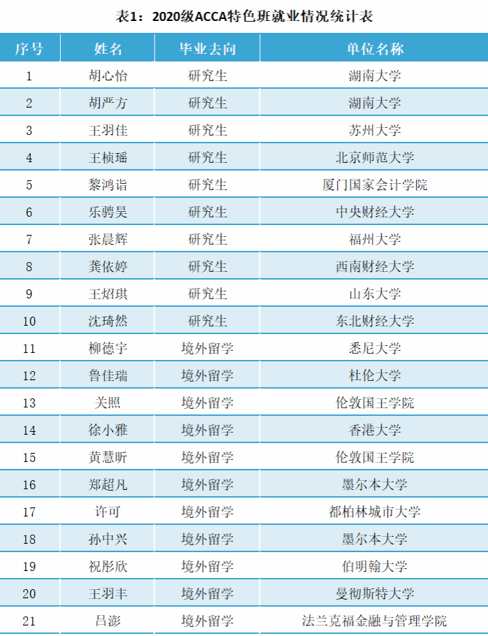 2020年,在公司公司的鼎力支持下,ACCA项目正式开设了成建制的国际会计特色班。这个特色班不仅快速展现了其独特优势,更以显著的成效证明了其培养模式的成功。