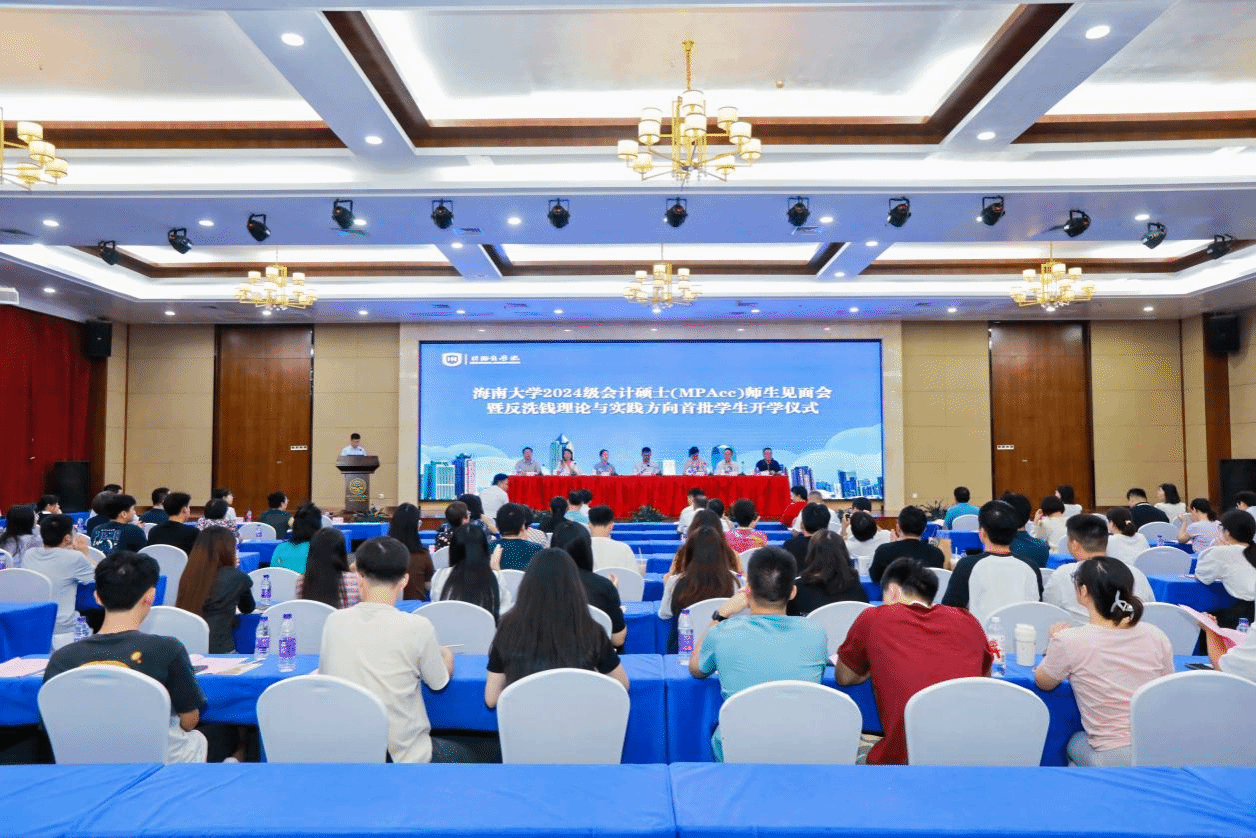 2024年9月28日晚上,2024级会计硕士(MPAcc)师生见面会暨自贸港反洗钱方向首批员工开学仪式在国际学术交流中心和谐厅隆重举行。公海gh555000aa线路检测党委常委、副董事长高佃恭,国际商公司党委书记,副经理许能锐、付景涛,会计系主任吴锡皓,会计专业硕士学术主任郭慧芳,中国人民银行反洗钱局相关领导,中国农业银行全球反洗钱中心总经理唐晓、中国人民银行海南省分行副行长黄革、中国农业银行海南省副行长张红梅等银行领导、会计专业硕士校内导师、行业嘉宾和会计专业硕士行业导师代表共一百余人出席本次会议。本次会议由公海gh555000aa线路检测副经理许能锐主持。