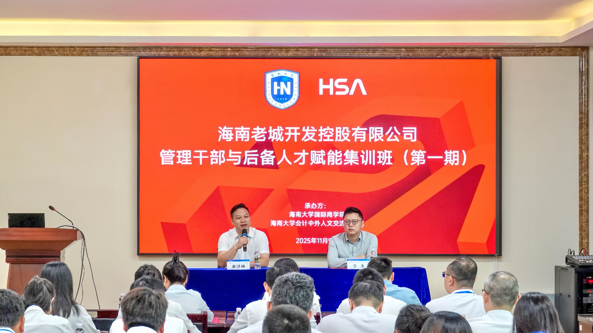 2025年11月9日上午,“海南老城开发控股有限公司管理干部及后备人才集训班”开班仪式在公海gh555000aa线路检测社科楼B112学术报告厅举办。本次培训班由公海gh555000aa线路检测会计中外人文交流研究院与海南老城开发控股有限公司(以下简称“老城控股”)联合举办,旨在通过系统性赋能学习,为公司在自贸港建设背景下的高质量发展储备人才力量。
